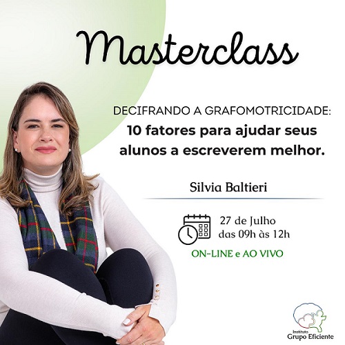 Nesta masterclass, a especialista em desenvolvimento infantil, Silvia Baltieri, irá explorar e aprofundar o tema da grafomotricidade — a habilidade motora envolvida na escrita.